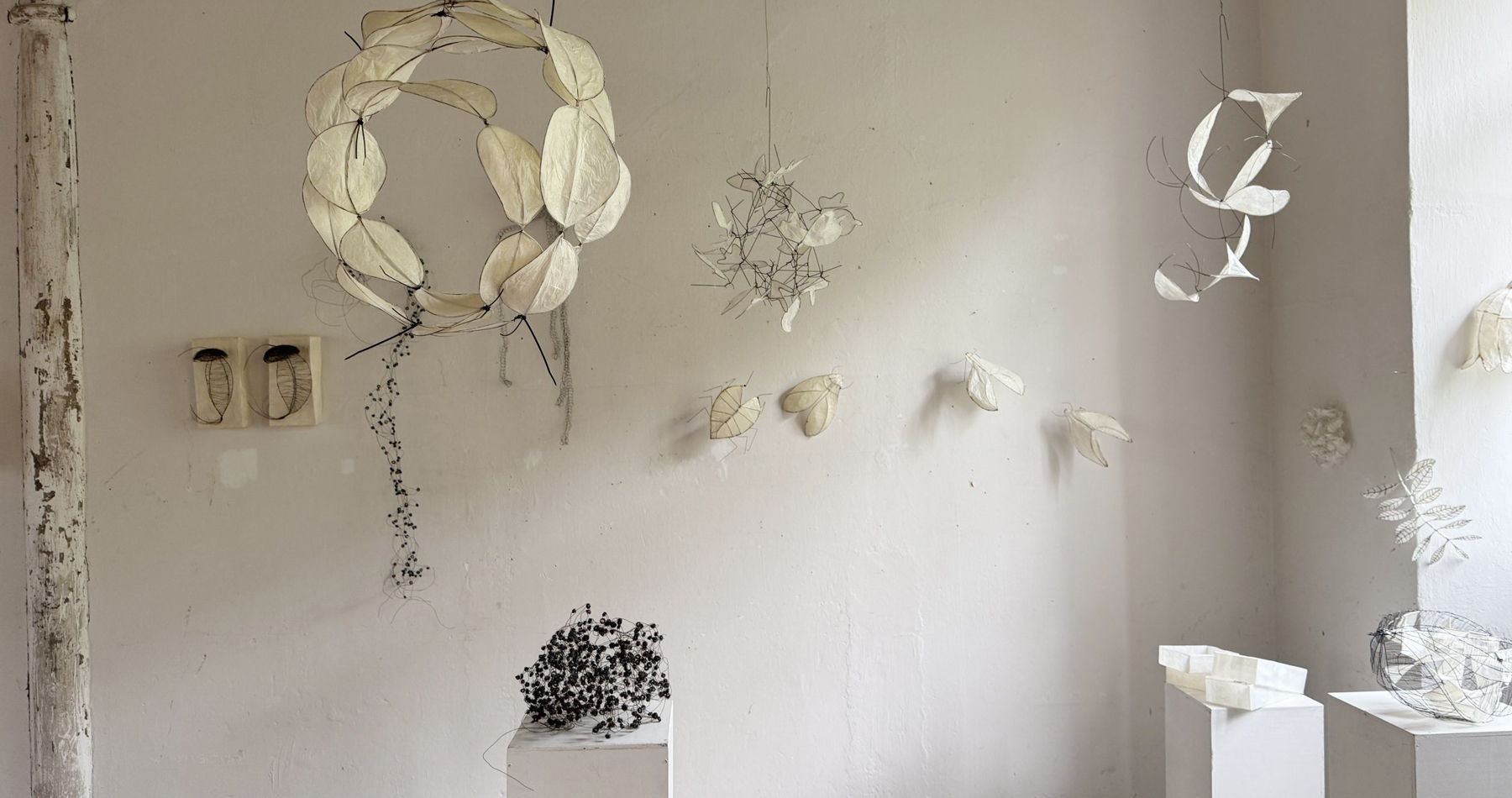 Draht und Papier auf raffinierter Weise verbunden zu einem lebendigen Naturkosmos. Die Linie spazieren führen, auf Papier, an der Wand und in den Raum. Drahtlinien werden zu Raumzeichnung, versehen mit papierenen Akzenten wachsen sie heran zu Reliefs, oder klar strukturierten Objekten. Flirrende Mobiles, strahlenden Lichtflocken, krabbelnde Insekten und vornehme Blätter. Mikroskopische Strukturen und wundersame Pflanzen inspirieren zum experimentellen Gestalten.